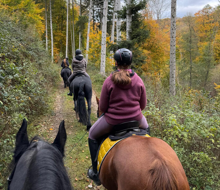 Dabei legen wir großen Wert darauf, dass jeder Reitschüler/in individuell gefördert wird. Aus diesem Grund bieten wir nur Einzelunterricht oder Unterricht in kleinen Gruppen von 2 – 3 Reitern an. In großen Gruppen hintereinander hertrotten gibt es bei uns nicht. Wir möchten, dass unsere Reitschüler/innen von Anfang an lernen, selbstständig und pferdeschonend mit feiner Hilfengebung zu reiten. Auch ängstliche Reiter/innen finden schnell Vertrauen auf unseren gut ausgebildeten und braven Pferden und Ponys in ruhiger und freudiger Atmosphäre. Die ersten Lerneinheiten für Anfänger und Sitzschulung finden an der Longe statt. Für unsere bereits fortgeschrittenen Schüler/innen bieten wir gemeinsame Geländeritte an.